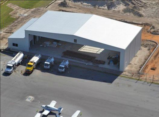 The PEMB hangar was supplied by Dean Steel Buildings and included a 120’ plane access hangar door. Eave height is 35’ and total clear span of 175’.