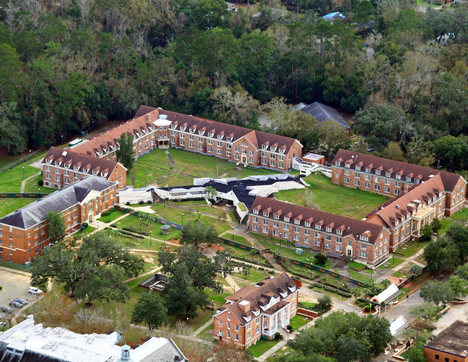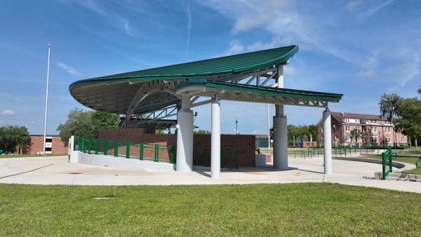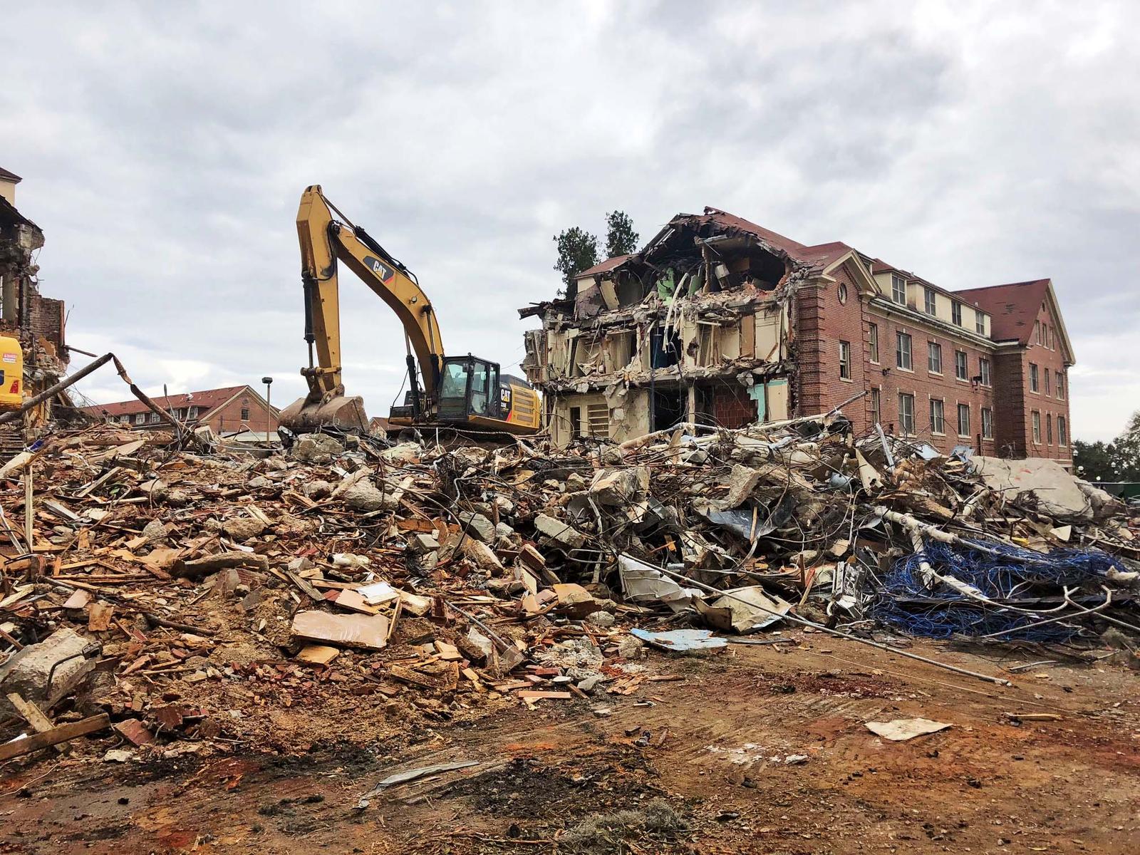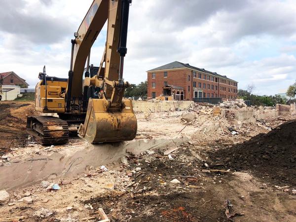 This massive project occurred in five phases over the span of two years. The two phases consisted of demolishing the residence halls, removing concrete sidewalks, and light fixtures. All of this was in preparation for a new student performing amphitheater and parking area. The third phase was to prepare the site, and included a storm drain, grading, temporary tree & plant protection, cast-in-place concrete, asphalt paving, and landscaping. The last two phases of converting the Pentaplex Residence Hall area to a performing amphitheater included a platform stage, steps, and a ramp with a canopy, foundation, multiple seating tiers, curb walls, and grassing. Scope of work included extensive earthwork, concrete & masonry, structural and miscellaneous metals, electrical & lighting, communications, data raceways & equipment, and other site improvements.