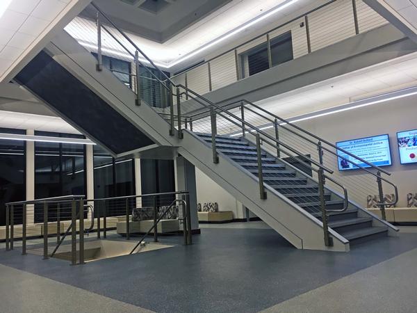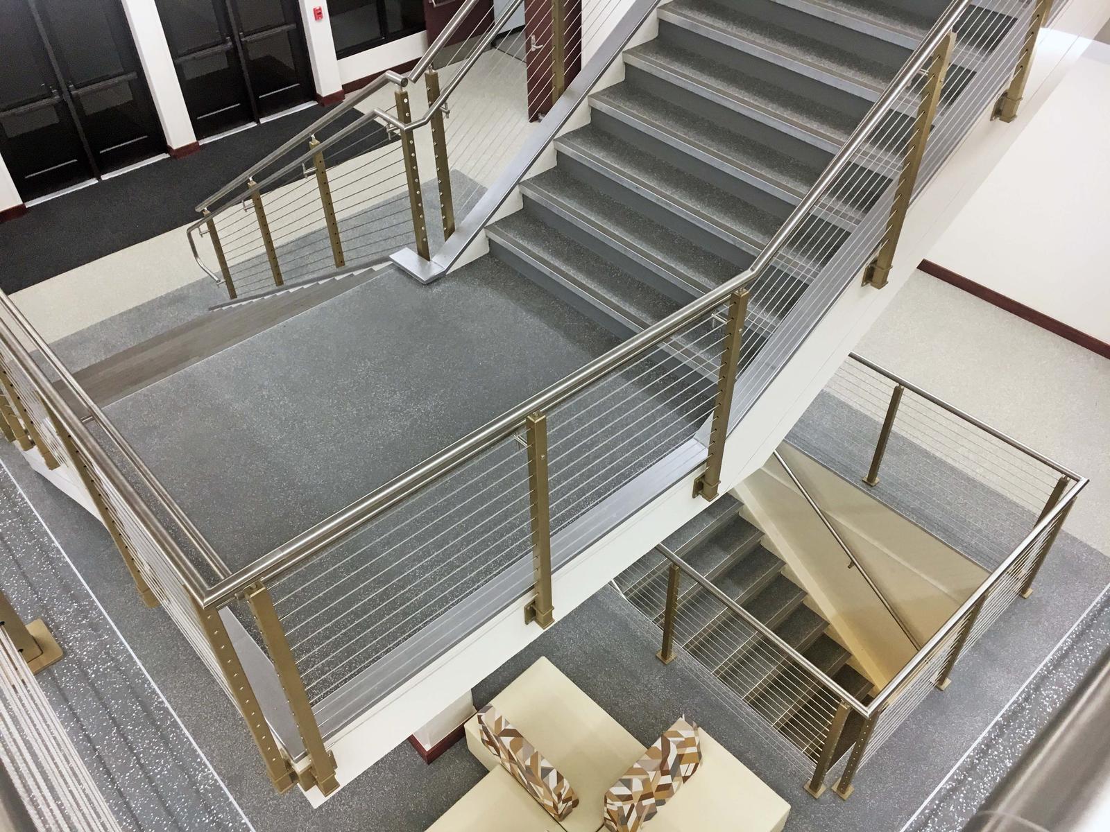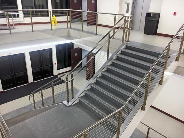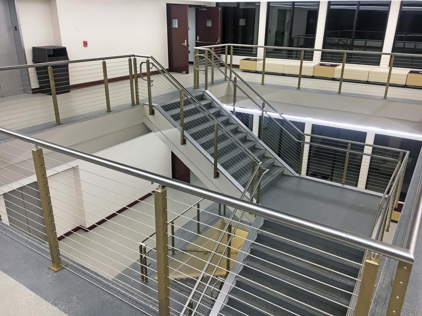 This project consisted of renovations to the existing atrium and included new finishes, acoustical ceilings, cable railing system, fire sprinkler relocations, electrical and lighting improvements, and new LVT flooring in the atrium and 1st and 2nd floor hallways.