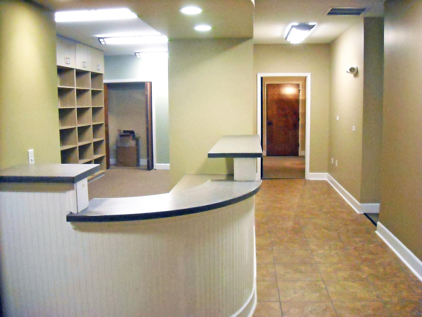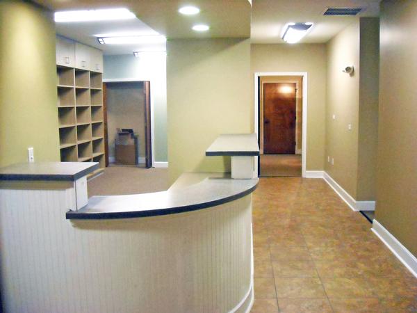 This dental office project included both interior and exterior work. Interior renovations included new casework, installation of new countertops, cabinets, doors and frames, new windows, and painting. Exterior work included painting and masonry. New vinyl flooring was also installed, along with HVAC, electrical, and plumbing work.