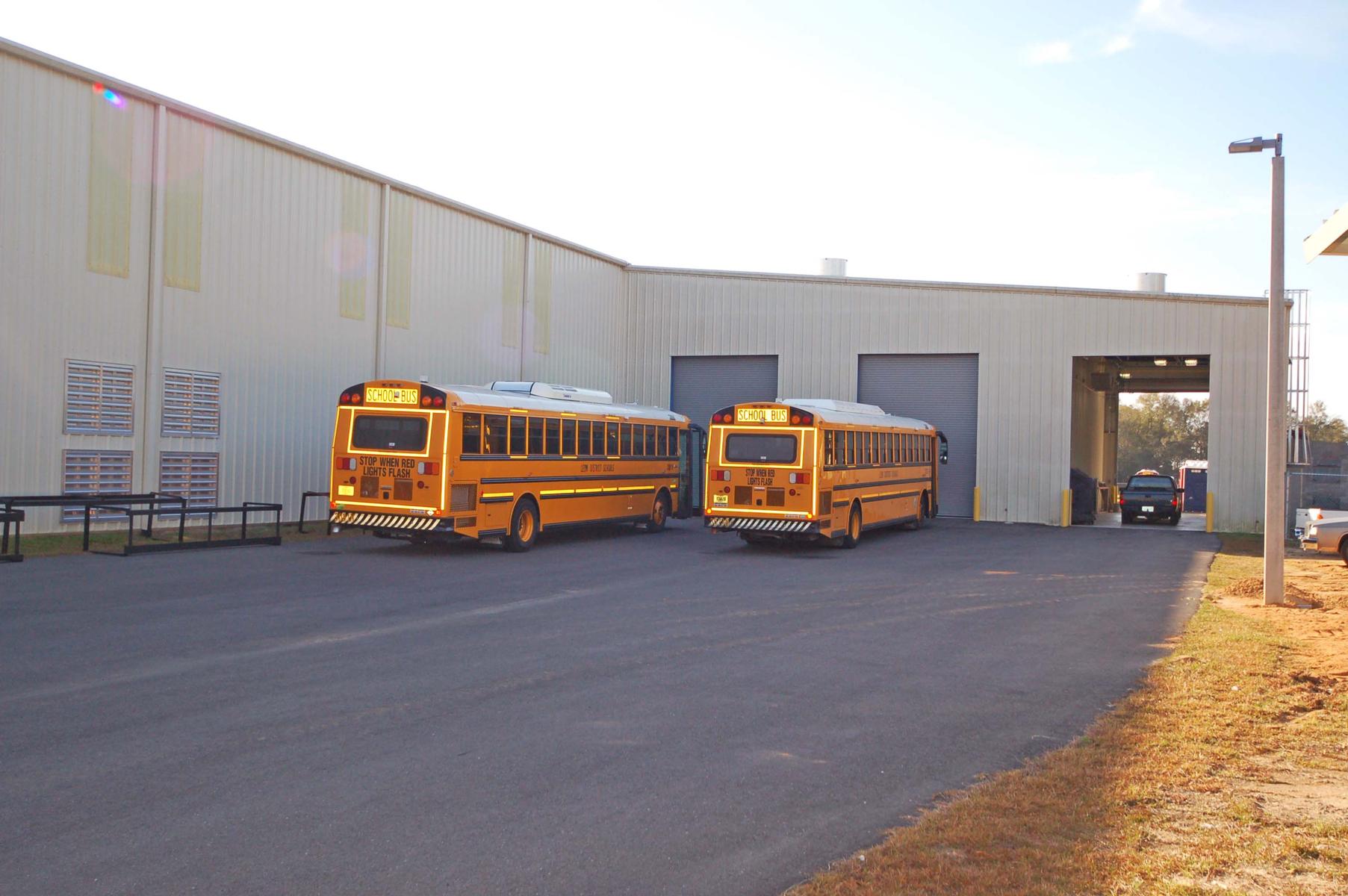 As part of their long term plan to convert their school bus fleet to compressed natural gas (CNG), the Leon County School District constructed a new 55,000 SF PEMB with 22 maintenance bays, 2 express bays, and 1 steam cleaning bay. A small 7,428 SF addition provides toilets, lockers, and offices, and an existing 5,167 SF concrete building was renovated for use for parts storage, offices, and training rooms. An extensive sitework project consisted of removal of approximately 12,000 cubic yards of unsuitable soils, underground utilities, site lighting, concrete curb & gutter, sidewalks, asphalt paving and landscaping/ irrigation. The project also included more than 500 feet of cast-in-place concrete retaining walls for the new stormwater management facility. Retaining walls averaged nine feet tall and were eight inches thick. A private CNG contractor, Nopetro, constructed and operates a free-standing CNG station, also designed by DAG, which is available for use by other Tallahassee-based businesses who have converted their vehicles to this clean power source. Work on this project was completed in four phases over several years.