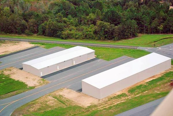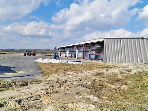 This project consisted of two 7,800 s.f. box hangars with hydraulic doors and two 12,480 s.f. T-hangars with sliding doors. Major work elements included steel building design (PEMB), slab design, associated site work, paving, and utilities (potable water and electricity).